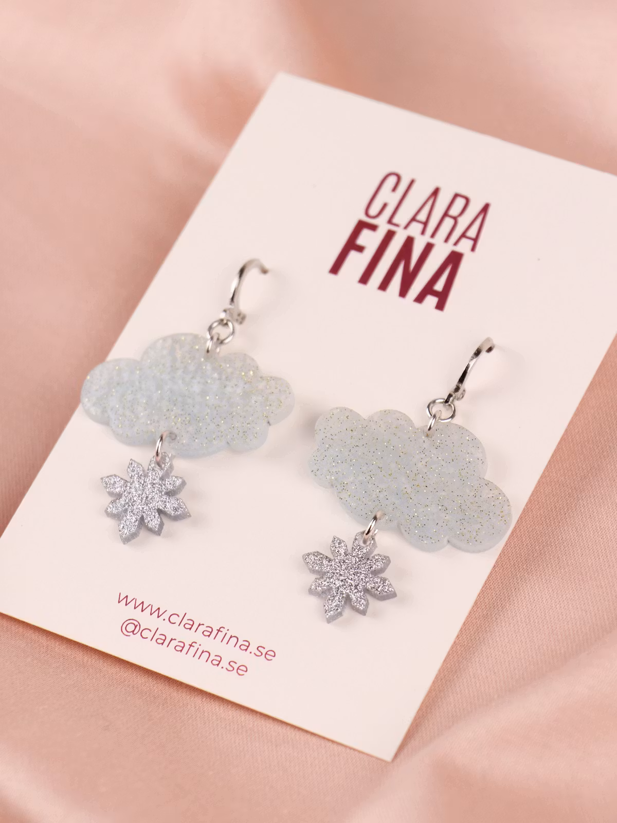 Vinterns perfekta statement örhängen är här! Dessa skimrande snömoln med små snöflingor är vad som behövs för att ta oss igenom vintermörkret!