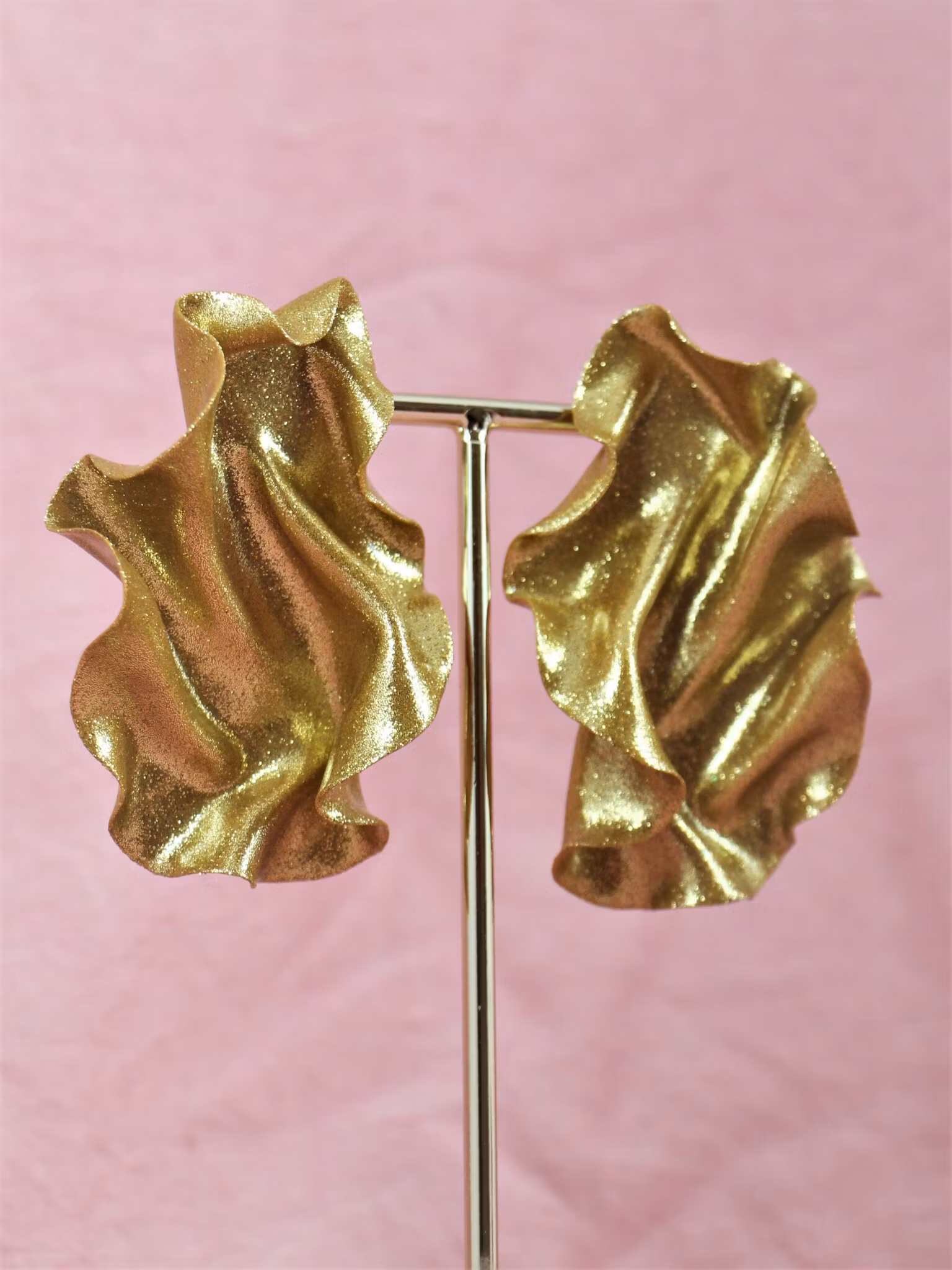 De skulpteras för hand och namnet kommer av örhängenas likhet med ett fladdrande, draperat satintyg.