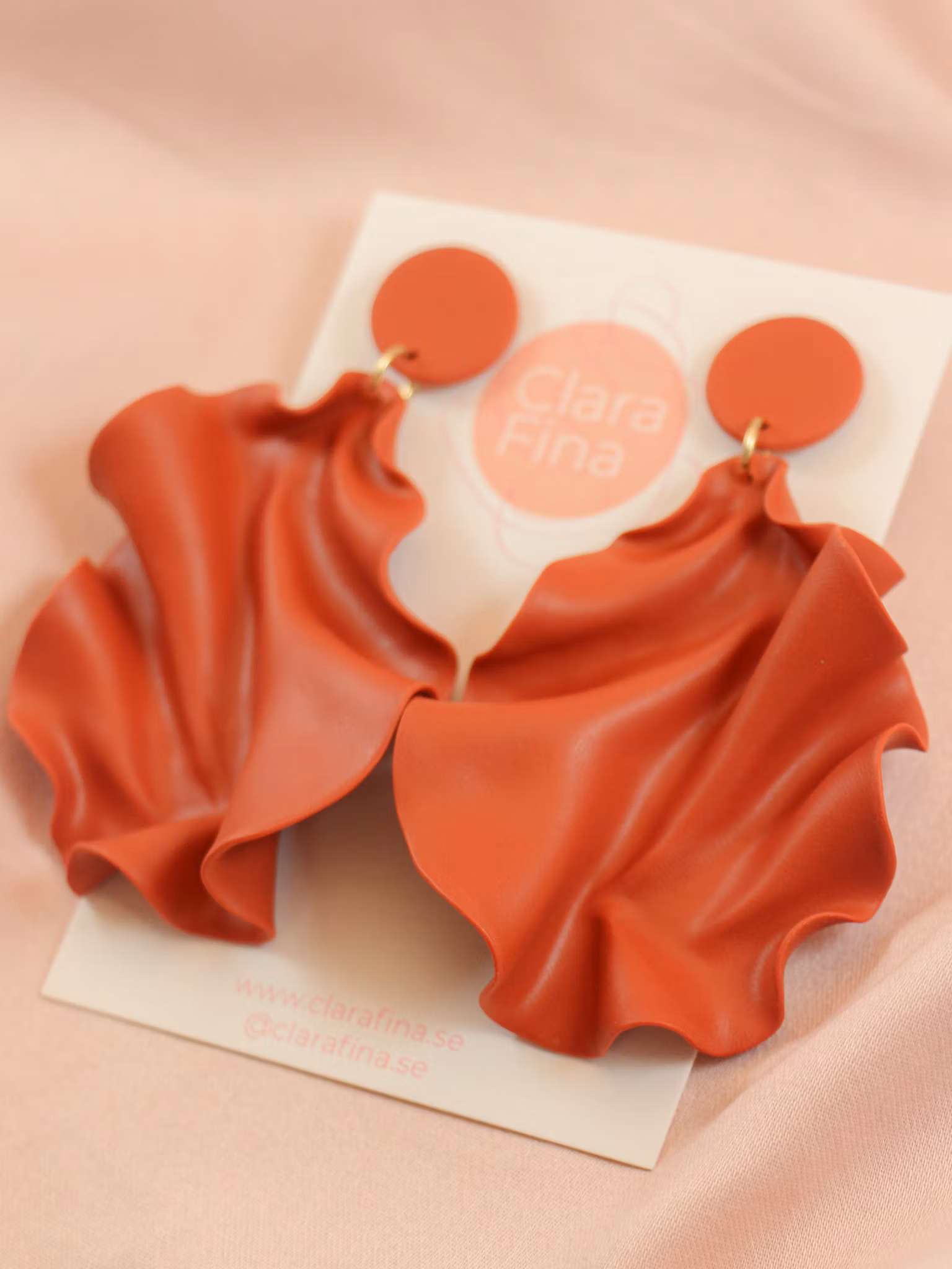 Tänk på att färgen kan skifta mellan olika skärmar, samt mellan de olika örhängena då lerans färg blandas för hand.