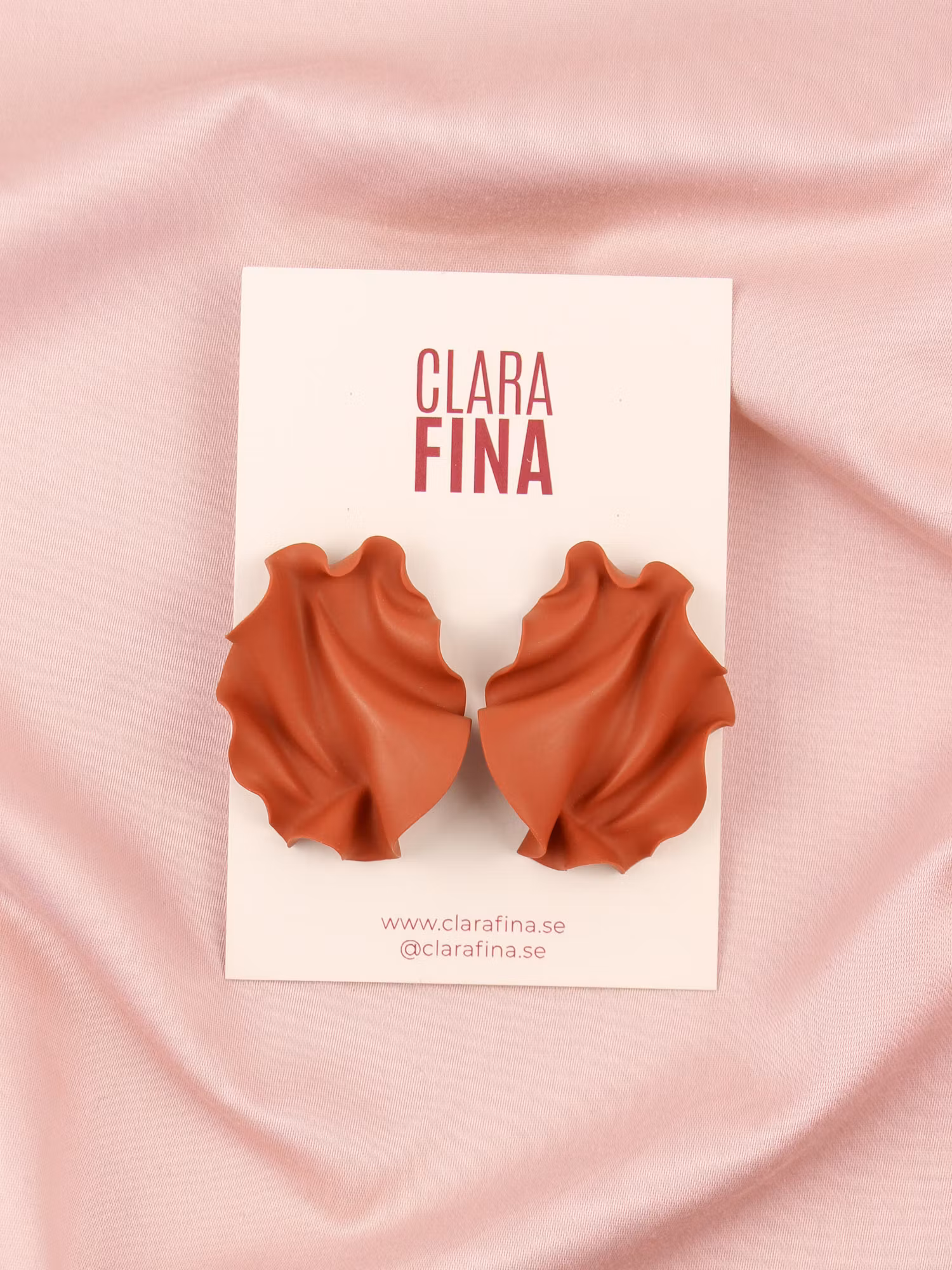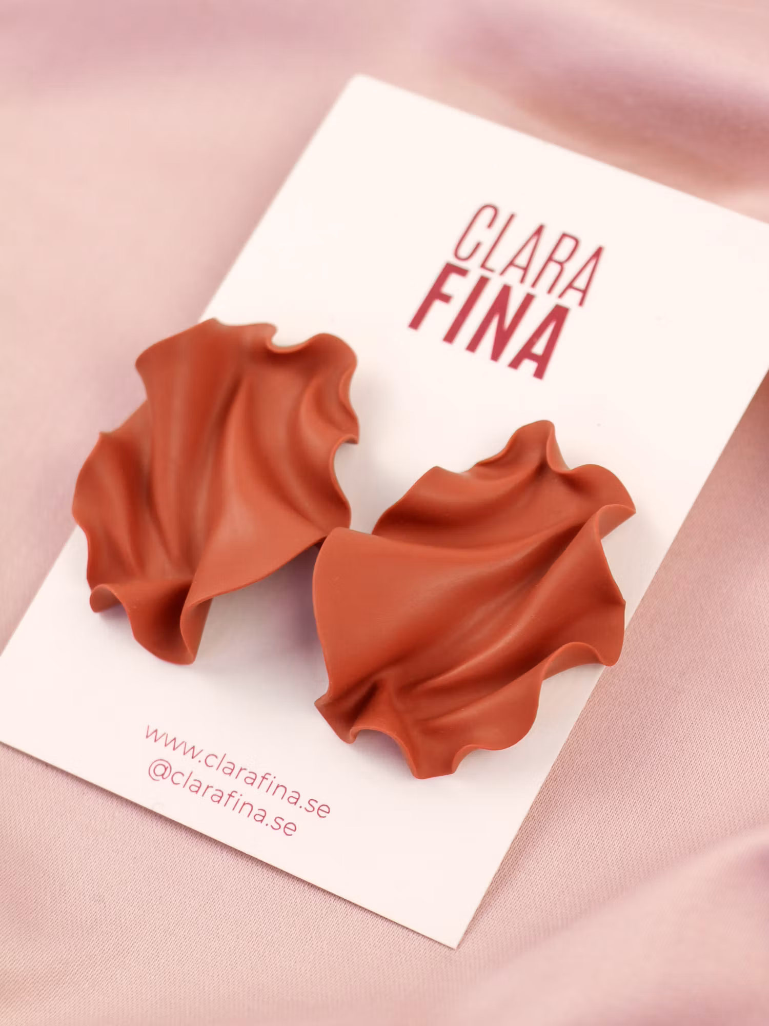Handgjorda statement örhängen, tillverkade i Göteborg. Stora rödbruna örhängen för säsongens fester!