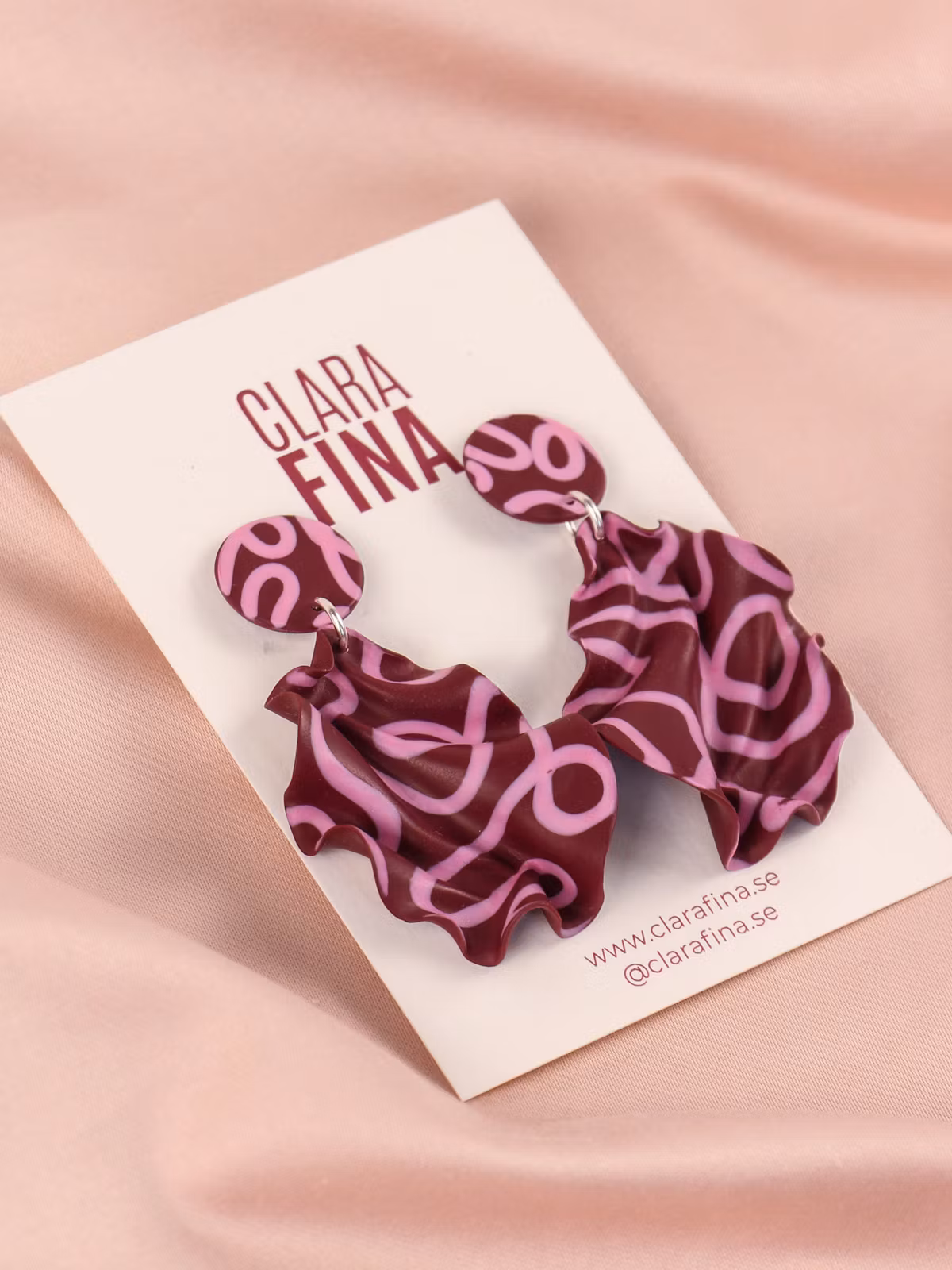 Tänk på att färgen kan skifta mellan olika skärmar, samt mellan de olika örhängena då lerans färg blandas för hand.