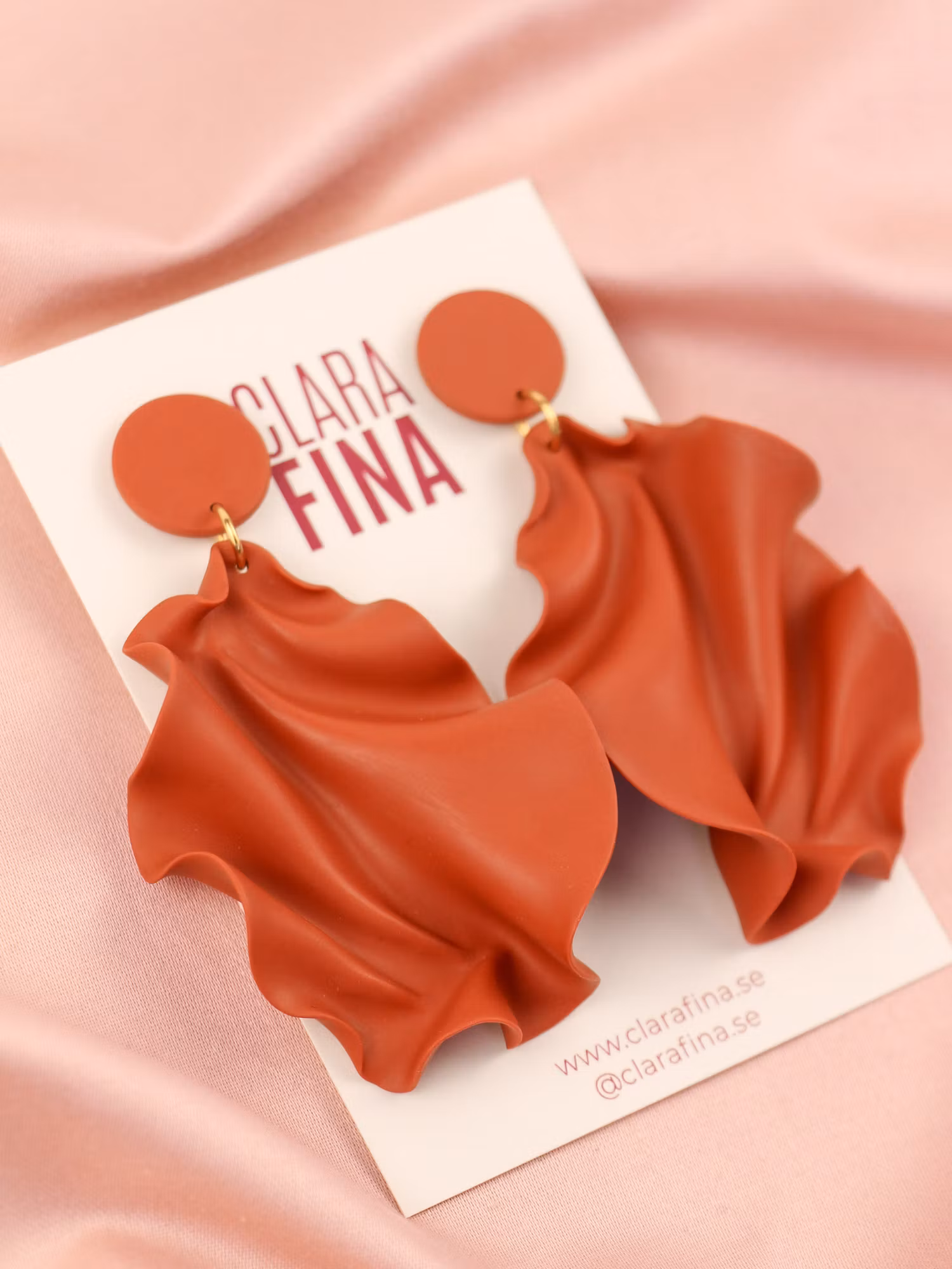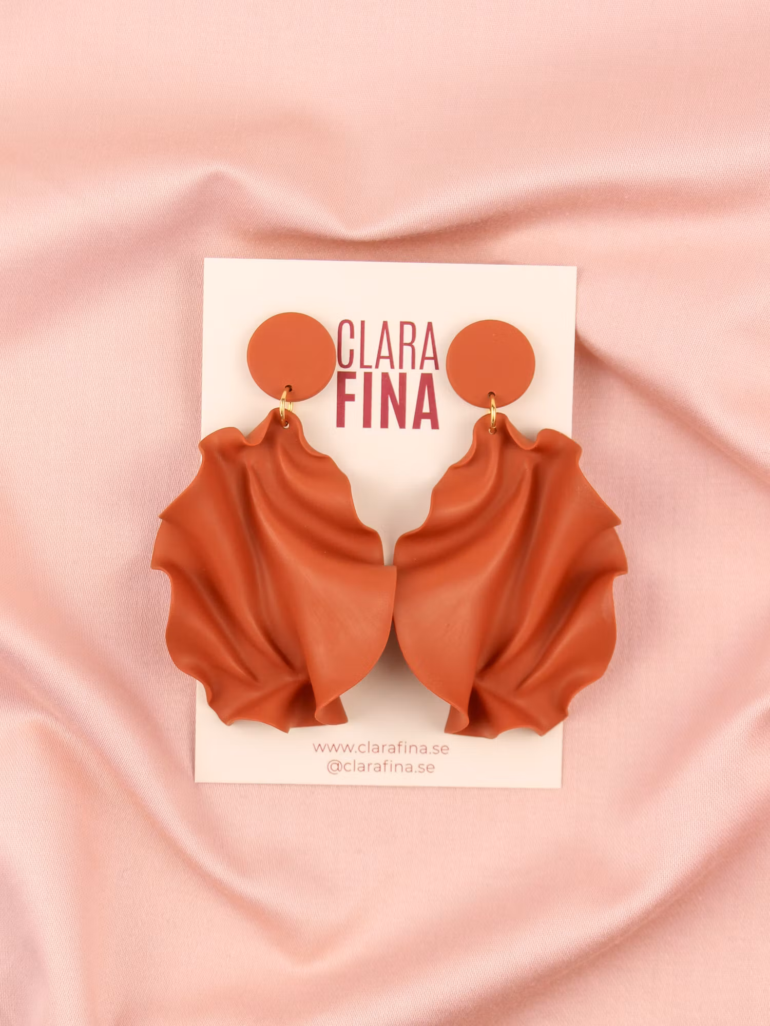 Tänk på att färgen kan skifta mellan olika skärmar, samt mellan de olika örhängena då lerans färg blandas för hand.