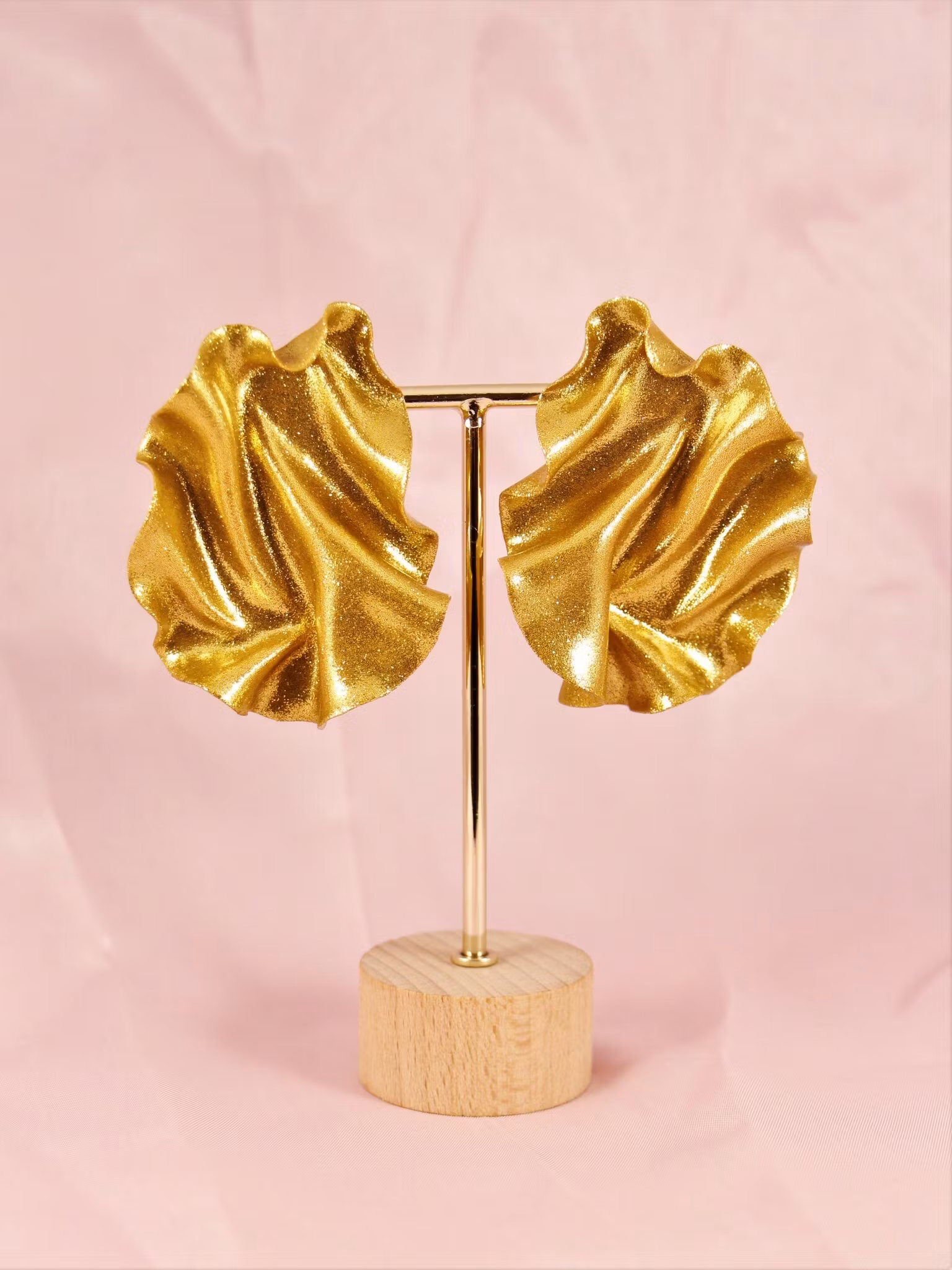 De skulpteras för hand och namnet kommer av örhängenas likhet med ett fladdrande, draperat satintyg.